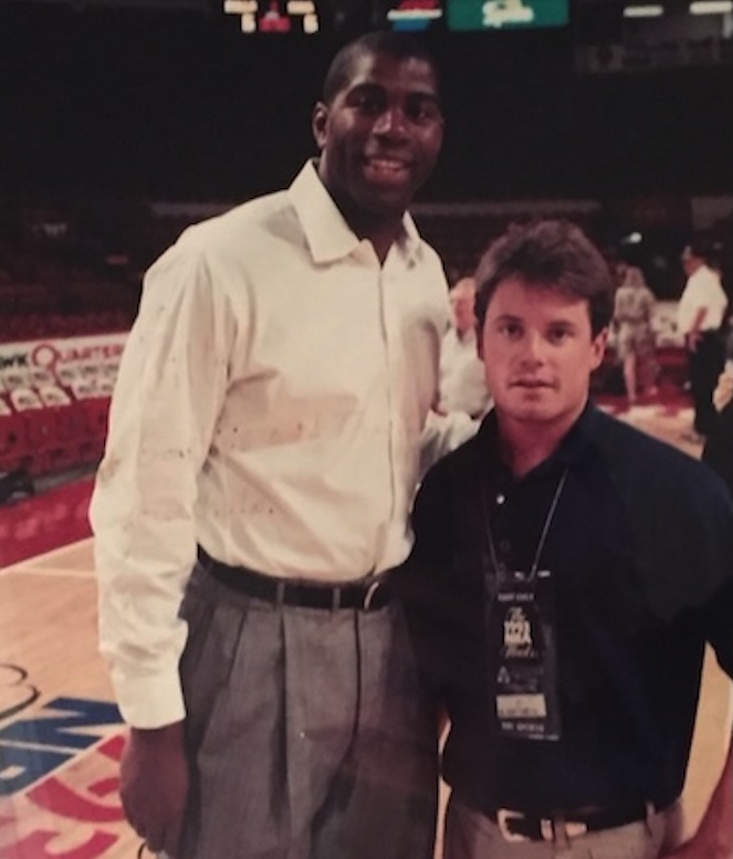 Billy Matthews and Magic Johnson at the 1993 NBA finals.