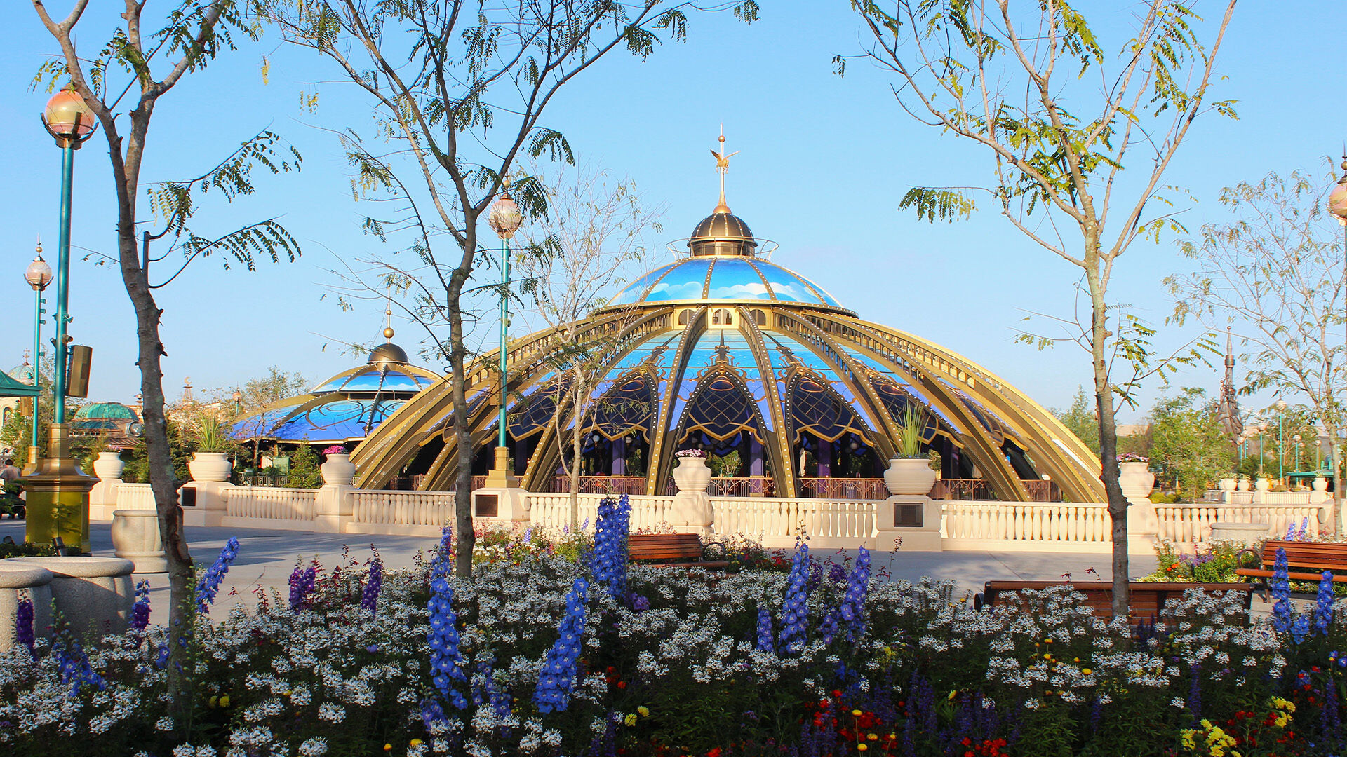 With acres of rolling gardens, chasing waterways and strolling pathways, Universal Epic Universe showcases green space woven into the heart of the park and throughout its periphery. Thousands of trees and over 600 unique plants provide shade and groundcover. Additionally, 535 acres of sensitive wetlands were maintained during construction of the theme park.